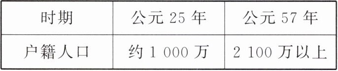 1. 下表反映的是东汉光武帝统治时期的户籍人口情况。通过该表,可以得出光武帝统治时期(