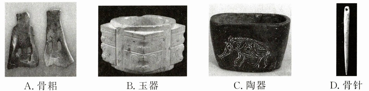 解析:选D。根据所学知识可知,山顶洞人使用打制石器,开始制作骨器,掌握了磨光和钻孔技术,可能已经知道人工取火,靠采集、狩猎为生,还会捕鱼,会缝制衣服。因此D项骨针能反映山顶洞人生活状况,D项正确。故选D项。
