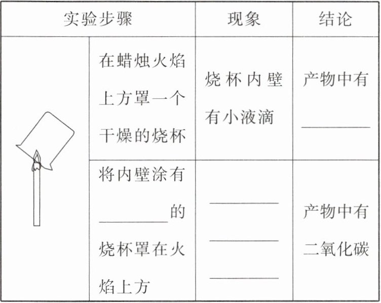 8. 某小组同学进行了有关蜡烛燃烧产物成分测定的实验,请你帮他们完成实验报告。