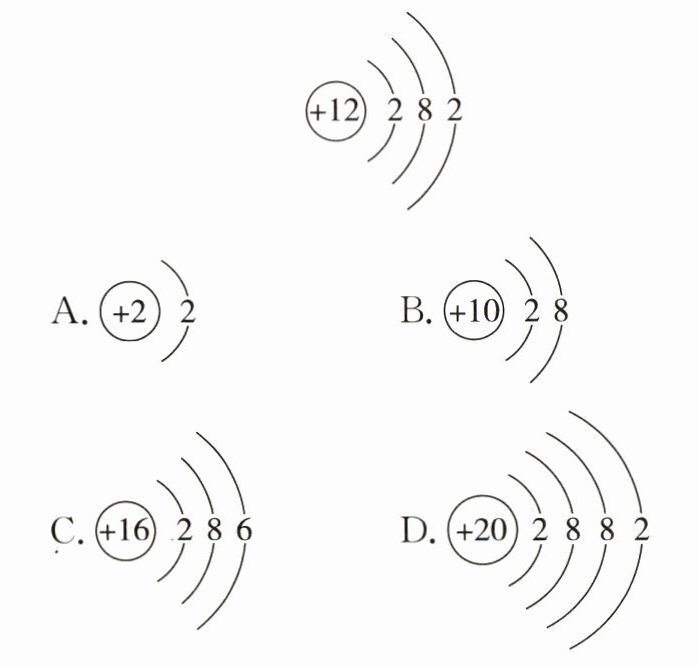 (2)下列原子结构示意图中,与镁原子的化学性质最相似的是