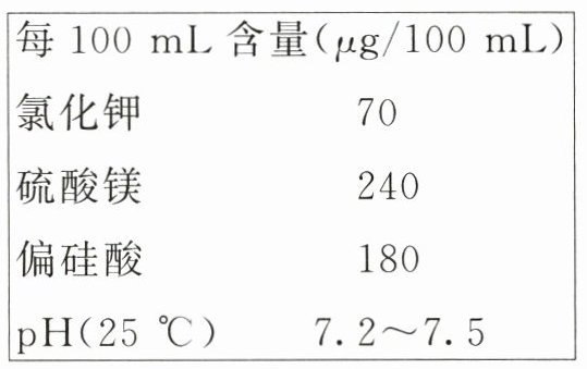 17. (3分)某品牌矿泉水其外包装上部分文字说明如图所示,请回答下列问题: