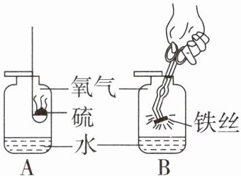 4. 如图中 A、B 分别表示硫、铁丝在氧气中燃烧的示意图。请填空: