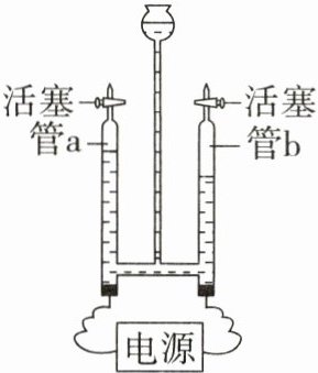 在电解器玻璃管里加满水,接通直流电源,一段时间后断开电源。用燃着的木条分别在两个玻璃管尖嘴口处检验电解反应中产生的气体。