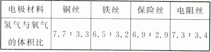 [实验设计]分别选用不同的电极材料进行电解水实验,3分钟后记录实验数据如表: