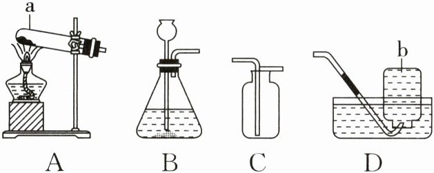 (填字母)。发生反应的文字表达式是高锰酸钾$\xrightarrow{加热}$锰酸钾+二氧化锰+氧气