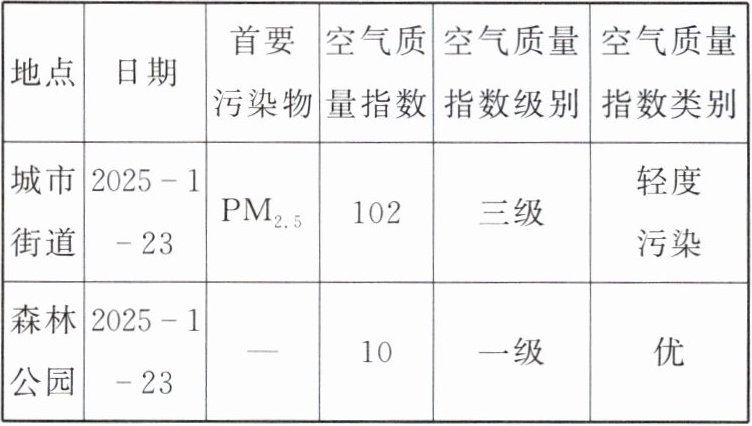 4. 如表是车水马龙的城市街道和某森林公园两地的空气质量指数日报,下列说法错误的是(