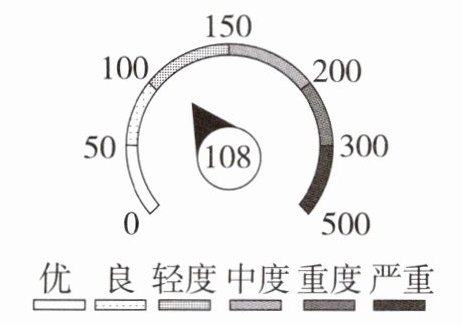 3. 空气质量指数(air quality index,简称AQI)是定量描述空气质量状况的指数,分为六级,相对应空气质量的六个级别,其数值越大,说明空气污染状况越严重。某日某市的空气质量情况如图所示,该日的空气质量为(