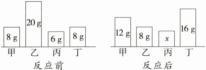 9. 密闭容器内有甲、乙、丙、丁四种物质,在一定条件下发生化学反应,反应前后各物质质量如图所示。下列说法错误的是 (