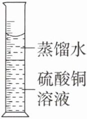 (2)如图所示,用长颈漏斗小心地将硫酸铜溶液(蓝色)注入水的下面,可以看到明显的界面。静置几天后,界面逐渐模糊不清了(