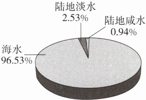 5. 根据下图全球海水、陆地水储量比,下列说法错误的是(