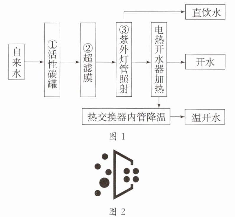 5. 近年,某市学校均安装了直饮机,让师生们喝上了干净、放心的饮用水。图1是直饮机的工作流程图。请回答: