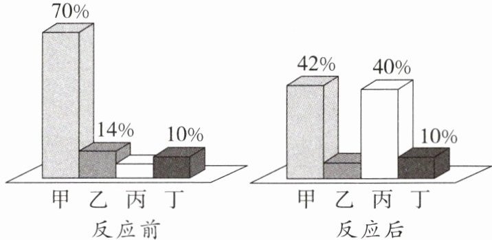 4. 在密闭容器中有甲、乙、丙、丁四种物质,在一定条件下反应,测得反应前后各物质的质量分数如图所示。下列说法正确的是(