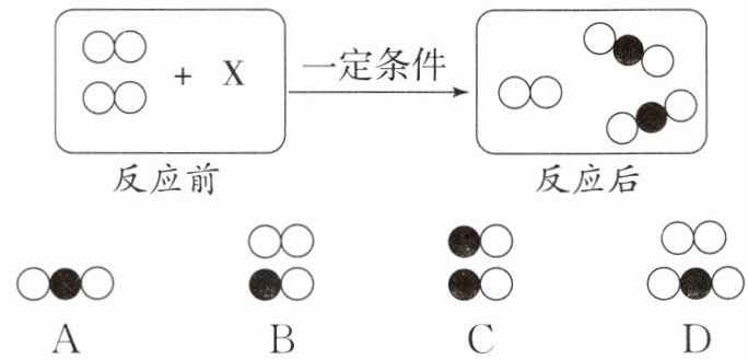 3. 如图是某反应过程的微观示意图,“〇”与“●”分别表示不同元素的原子。图中 X 处的粒子示意图是(