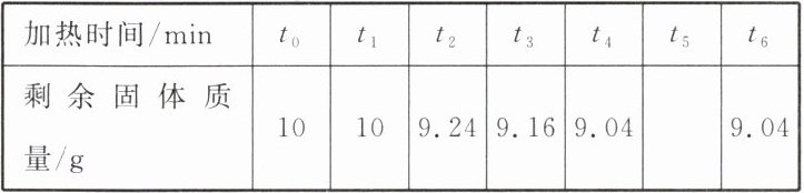 2. 实验室有一瓶含杂质的高锰酸钾,兴趣小组同学取10g该试剂放入大试管中加热(杂质不参加反应),并在不同时刻测定试管内剩余固体物质的质量,实验数据记录如下,请回答: