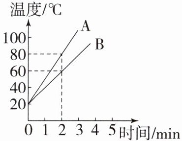 D.同时加热 2 min,液体 A 比液体 B 温度高,所以液体 A 吸收热量比液体 B 多