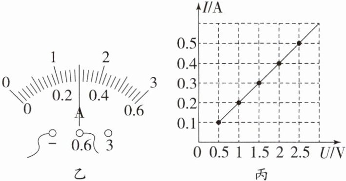 (4)实验中测得五组数据,并根据数据绘制出定值电阻$R的I-U$图像如图丙所示,由图像可得:导体的电阻一定时,通过导体的电流与导体两端的电压成______。