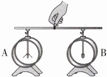 1. 如图所示有两个相同的验电器, 其中 A 带正电、B 不带电. 用带有绝缘柄的金属棒把 A 和 B 连接起来. 下列说法错误的是