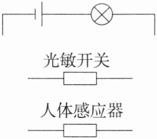 8. 小明网购了一款人体感应灯,这种灯只有在光线暗且有人体靠近时才会自动发光,在人离开时自动关闭.请你在图中正确画出能够表示该灯工作原理的电路图.