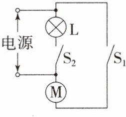 )A.$ S_{1} $ 闭合、$ S_{2} $ 断开时,照明灯与电动机并联
