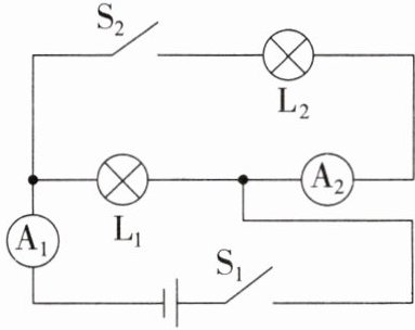 )A.只闭合$S_1$时$,L_1$发光$,L_2$不发光$,A_1$测$L_1$电流
