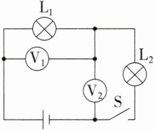 解析:选A.因两灯串联时发光,而发生故障后仍有一个灯泡发光,所以,电路是通路,不可能发生断路现象,只能为短路,故B、C不正确;$V_{1}$的示数变小,$V_{2}$的示数变大,所以,电路故障为$L_{1}$短路,$L_{2}$正常,故A正确,D不正确.故选A.