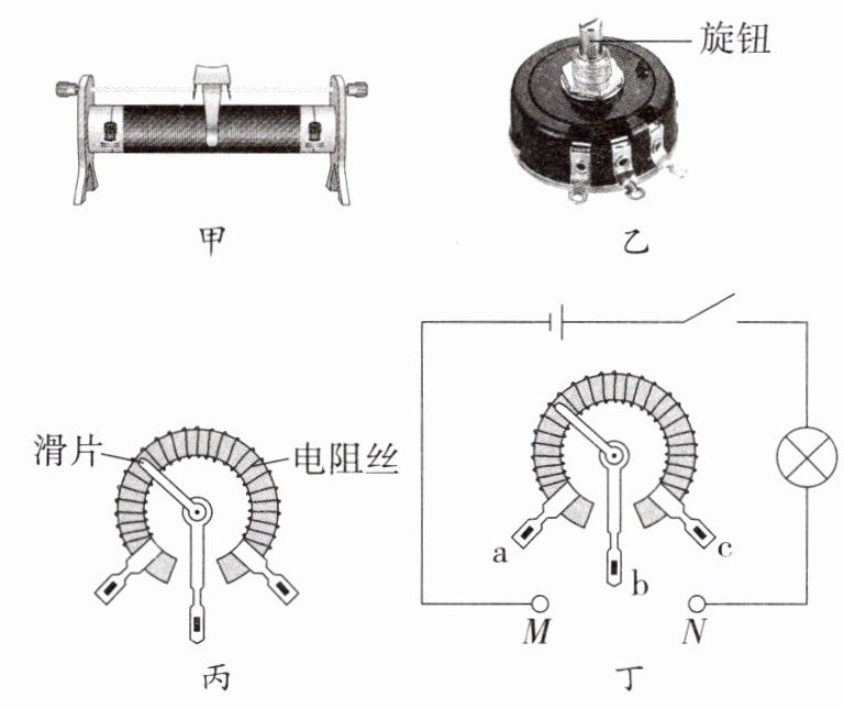 (1) 能改变接入电路中电阻大小的元件叫作______,其中有一种是学生在实验室中常用的滑动变阻器,如图甲所示;还有一种是如图乙所示的电位器,其内部结构如图丙所示,它们都是通过改变接入电路中电阻丝的______来改变接入电路中电阻大小的.