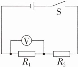 3. 如图所示,电源电压保持$6\ V$不变,通过电阻$R_{1}的电流是0.5\ A$,$R_{2}= 8\ \Omega$,闭合开关S,电压表的示数为(