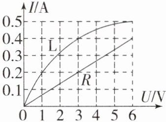 $A$;若将其串联在电源电压为$4\ V$的电路中,L和R的阻值之比为$1:3$