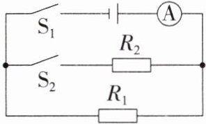 8. 如图所示的电路中,电源电压为$15\ V$,电阻$R_{1}为10\ \Omega$,同时闭合开关$S_{1}$、$S_{2}$时,电流表的示数为$2.5\ A$。求: