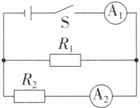 1. 如图所示的电路中,电阻$R_{1}>R_{2}$。开关S闭合后,$R_{1}$、$R_{2}两端的电压分别为U_{1}$、$U_{2}$,通过$R_{1}$、$R_{2}的电流分别为I_{1}$、$I_{2}$。则(