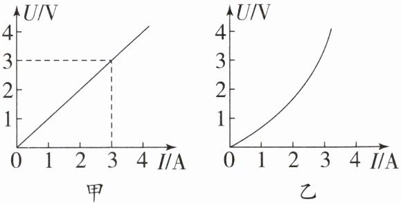2. 在用“伏安法测电阻”的实验中,有两位同学分别选用定值电阻和小灯泡为测量对象,在处理实验数据时,画出定值电阻和小灯泡的U-I图像,分别如图甲、乙所示,则对于图像的分析,以下说法错误的是(