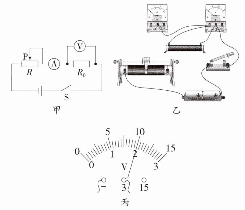 (4)某次测量时,电压表的示数如图丙所示为____V,电流表的示数为0.4A,则本次测得R₀的阻值为____Ω。