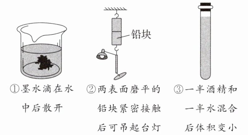 B.水与酒精混合后总体积变小,可说明分子间有引力