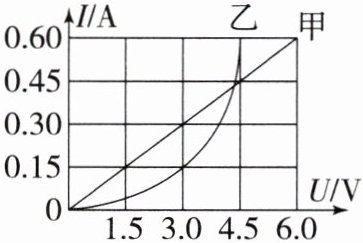 5. 在某一温度下,两个电路元件甲和乙的电流和电压的关系图像如图所示. 若将元件甲、乙串联后接在电压为$4.5V$的电源两端,甲和乙消耗的总功率是