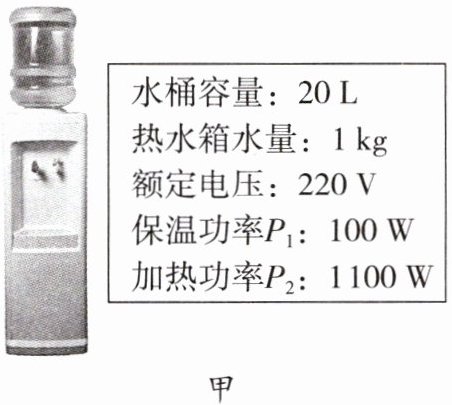 6. 图甲为某品牌饮水机及其铭牌,图乙为其内部简化电路图,该饮水机有加热和保温两个挡位。$R_1、$$R_2$均为电热丝,当热水箱中水温降至70 ℃时通过自动开关$S_2$切换到加热挡,当温度达到100 ℃时自动切换到保温挡。饮水机始终在额定电压下工作。已知c₍水$₎= 4.2×10^3 J/(kg·℃),$求: