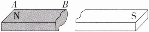 9. 小明同学不小心将条形磁铁从中间摔成了两半,他拿起标注为 N 极的一半磁铁,这段磁铁两端为 A、B,如图所示,他认为这段磁铁只有一个磁极 N 极. 请你自选器材,证明他的观点是错误的.