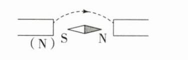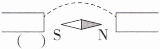 6. 磁体旁的小磁针静止时所指的方向如图所示,请在括号中标出磁体的磁极,并标出图中磁感线的方向.