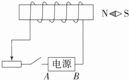 4. 如图所示是研究通电螺线管磁场的实验电路. 合上开关后,若小磁针停在如图所示位置,那么电源的