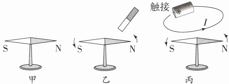 B.如图乙,小磁针发生偏转,是受条形磁体周围磁场的影响