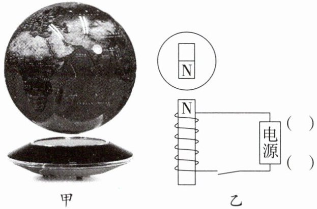 7. 如图甲所示是一个磁悬浮地球仪,其内部结构示意图如图乙所示,球体内有一个条形磁体. 底座里面有一个电磁铁,可使地球仪悬浮在空中.