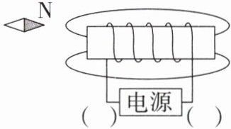 6. 请在图中根据小磁针N极指向标出通电螺线管的N、S极和磁感线的方向,并在括号内填上电源的正、负极.
