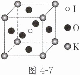 10. (1) KIO₃晶体是一种性能良好的非线性光学材料,具有钙钛矿型的立体结构,棱长为 a nm,晶胞中 K、I、O 分别处于顶角、体心、面心位置,如图 4 - 7 所示。与 K 紧邻的 O 的个数为