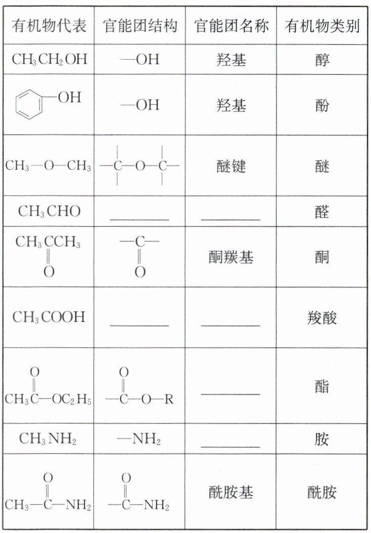 ②${ - C - H}$ 醛基 ${ - C - OH}$ 羧基 酯基 氨基