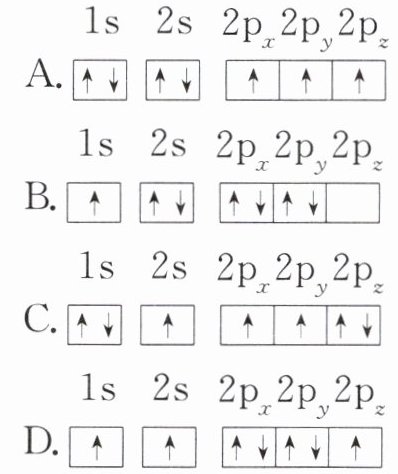 6. 下列氮原子电子排布的轨道表示式表示的状态,能量最高的是(