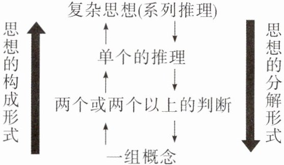 3. 抽象思维反映认识对象,是通过一系列环节和阶段实现的。读“思想的构成与分解形式图”,从图中看,抽象思维的基本形式是(