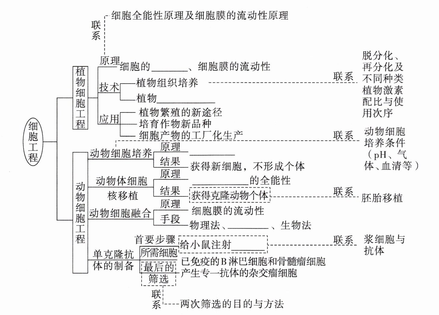 全能性 体细胞杂交 细胞增殖 动物细胞核 化学法 抗原
