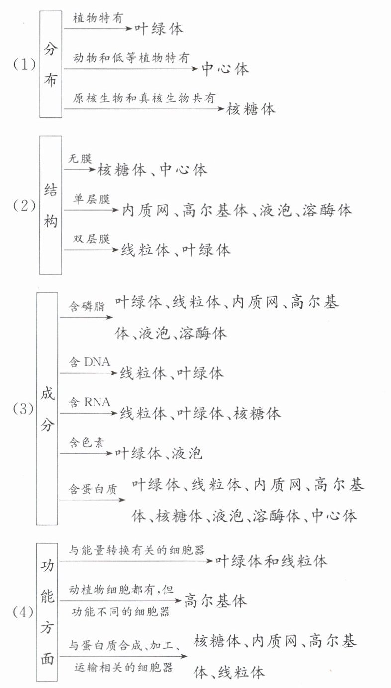 细胞器的归类分析