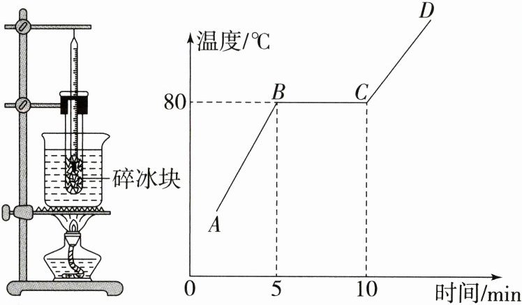 (选填“实”或“虚”)线是试管内碎冰温度随时间变化的图像,第7min时烧杯内的碎冰处于固液共存