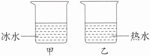 8. 夏天,小雨将冰水和热水分别注入常温下的两只透明烧杯中,如图所示. 一会儿发现两只烧杯的杯壁上都有一部分出现小水珠,变得模糊了,针对这一现象,下列说法正确的是 (