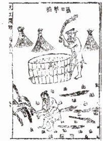10. 如图所示是《天工开物》中描述的古代劳动人民在田间割稻、脱粒的情景. 夏天的清晨,稻叶上的露珠是